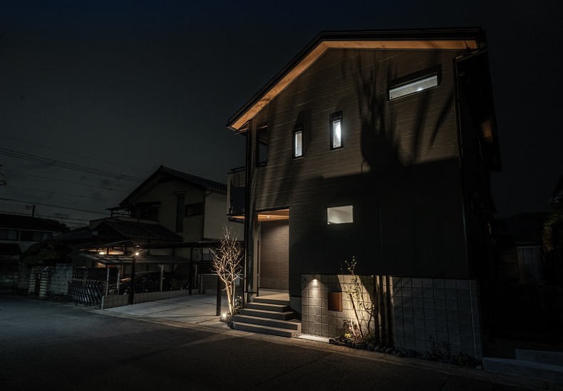 京都市U様邸 昼は品よく、夜はドラマチックに。光で完成するモダンエクステリア