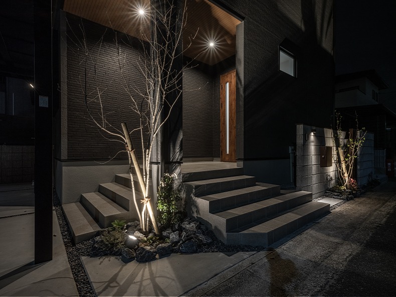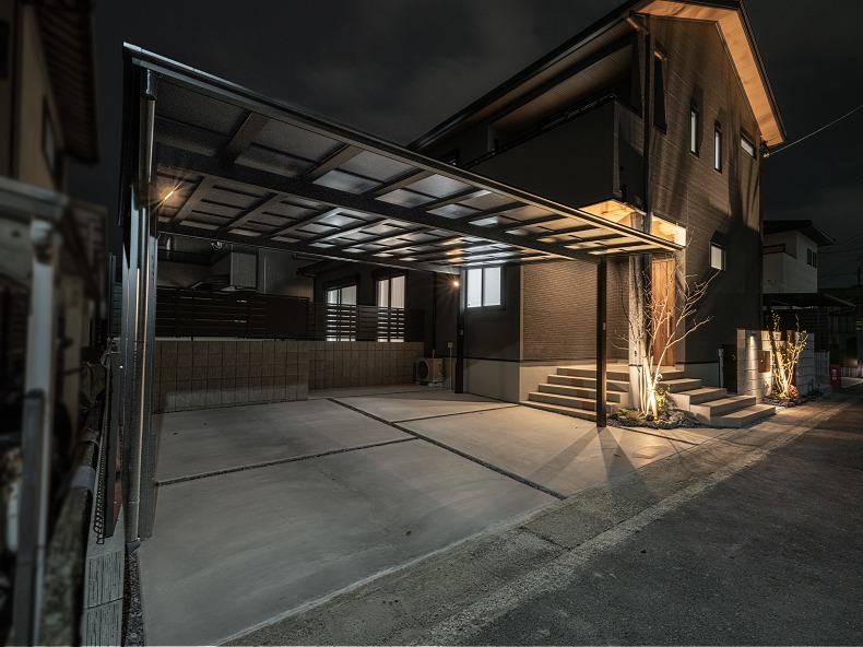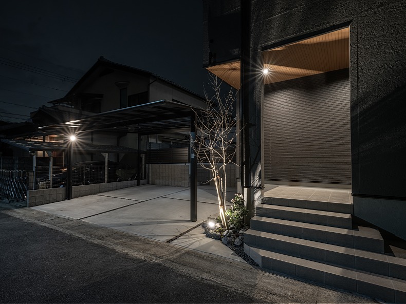 使いやすさをきちんと確保しながら、夜景まで美しく設計された、暮らしに寄り添うエクステリアです。