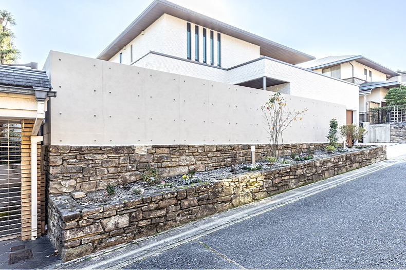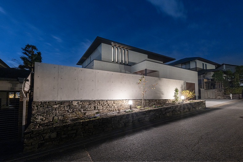 京都市O様邸 強度・耐久性・デザイン性抜群のグランドアートウォールが自然のキャンバスに。機能的なクローズ・エクステリア