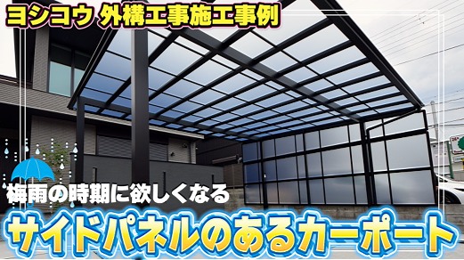 屋根材とサイドパネルには熱線吸収ポリカーボネートを採用し、夏の直射日光や横風・雨から車をしっかり守ります。