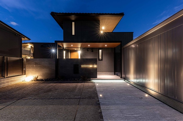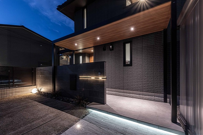 ライティングもこだわってデザインし、昼と夜、どちらの景観も美しいエクステリアです。