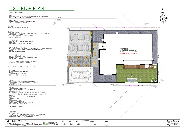 入り口右手には、イナバの中では最もハイスペックなガレージ「アルシア」を施工して、ご家族の愛車を安全に格納します。