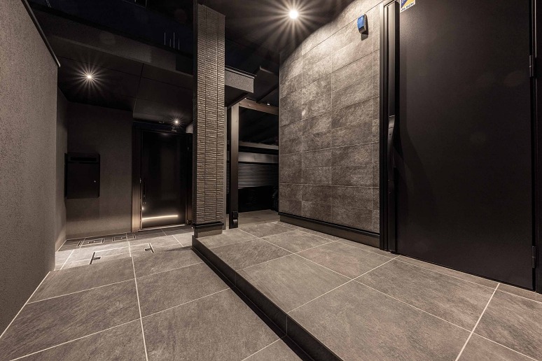 重厚感あるモダンなデザインで、アイアン風のカームブラックがエントランスを引き締めます。