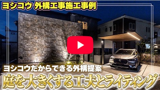 車庫の背面に位置する庭部分はグランドアートウォールとアルミの目隠しフェンスで仕切り、道路から目隠しするとともに、広々としたプライベート空間を確保しました。
