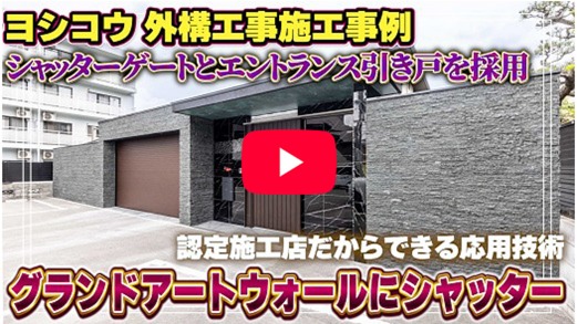 グランドアートウォールにシャッターゲートと門扉を組み込んだ、フルクローズのエクステリアです。
